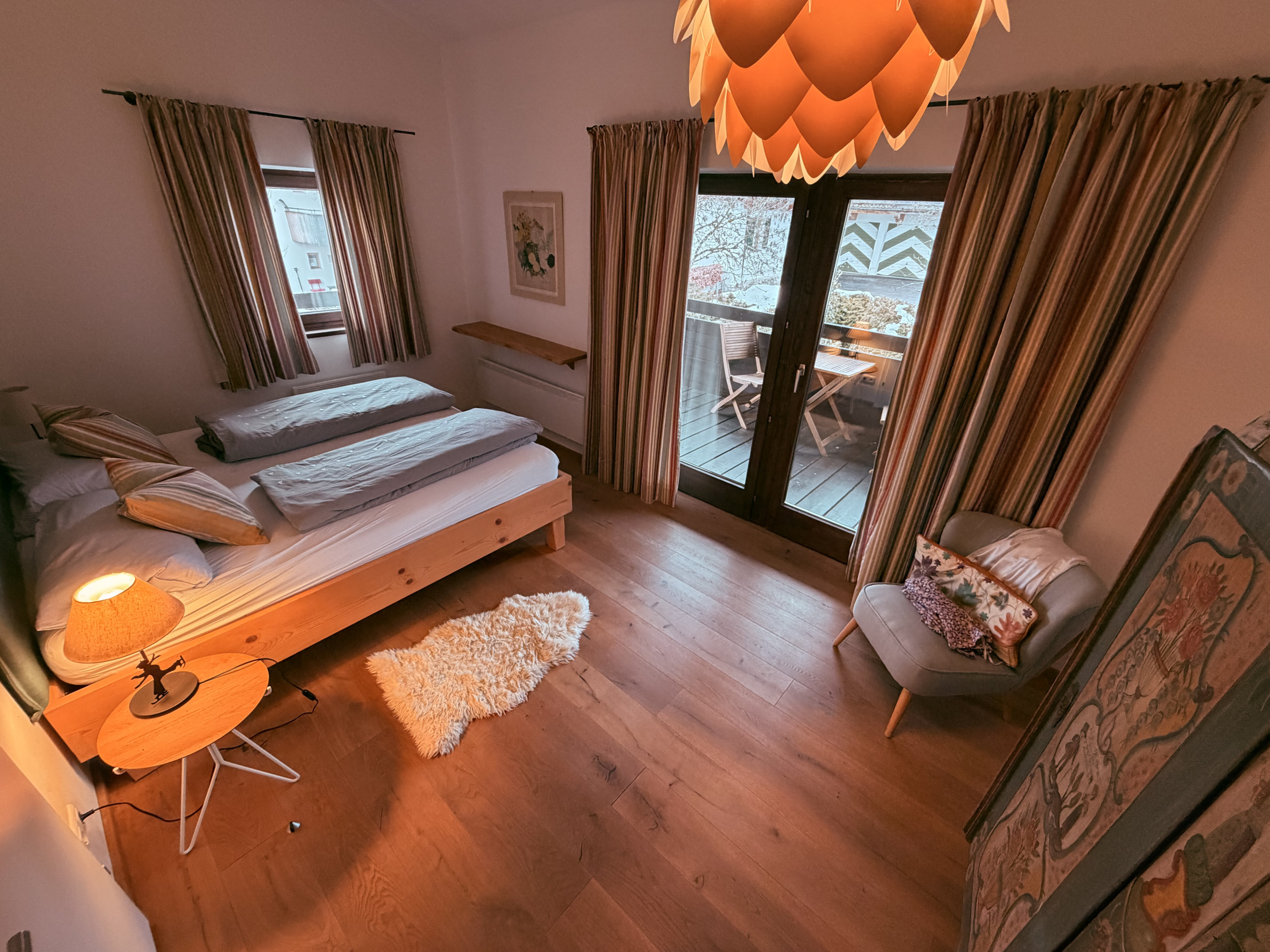 3 bedrooms - 2 x double beds + 3rd bedroom with 3/4 size bed - all of them boasting sweeping views of Kitzbühel and the surrounding mountains. (master bedroom has balcony access with views of the famous 'Streif.'