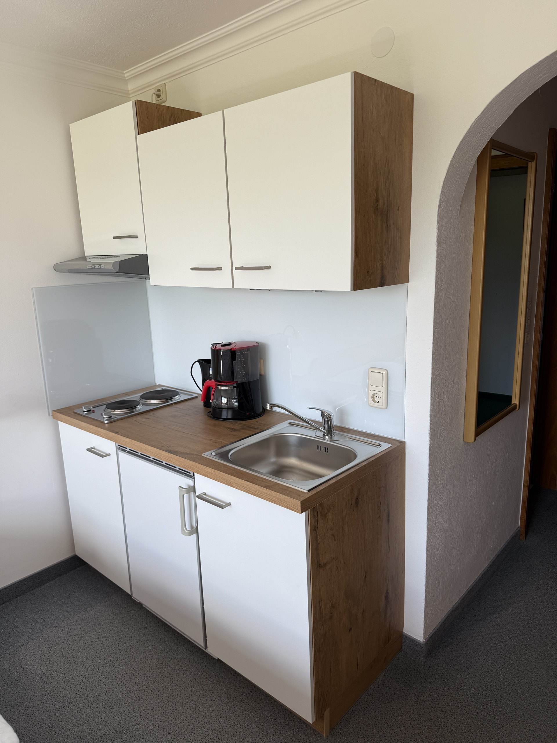• kitchenette met kookplaat, koelkast, waterkoker en koffiezetapparaat en alle kookgerei